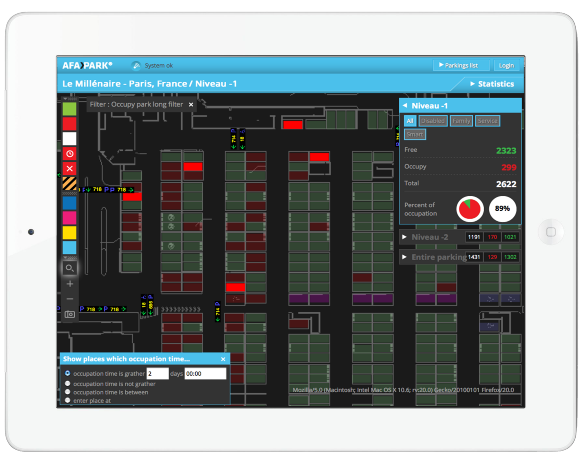 Logiciels de supervision locale et Web, compatible avec toute plate-forme pour gérer son parking en parfaite mobilité. Statistiques, état du parking en temps réel, maintenance du système.